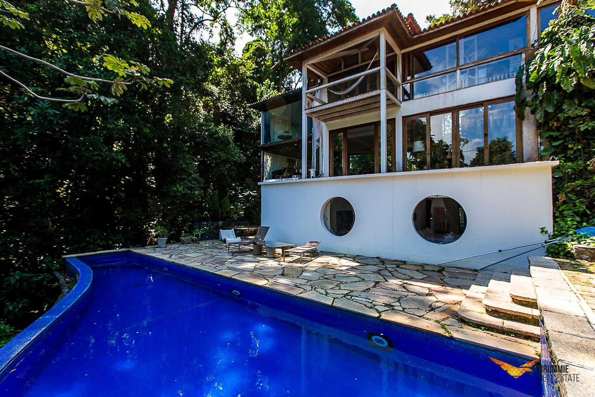 Charming and inspiring, this home is surrounded by the stunning views of the Tijuca Forest, Dois Irmãos Mountain, and the Botanical Garden. A true embrace of nature, where lush greenery meets creativity.