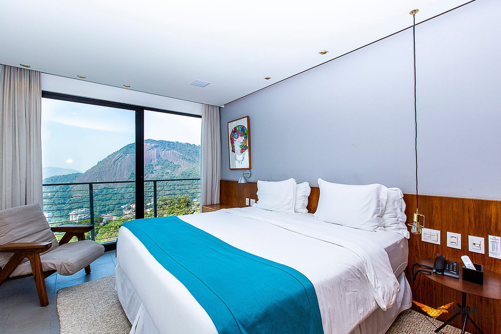 High above Rio, this former boutique hotel has been transformed into a luxurious private villa overlooking Sugarloaf Mountain, Christ the Redeemer, and Botafogo Bay. Nestled in lush forest with occasional visits from toucans and monkeys, the estate features 9 deluxe suites across two modern buildings, hosting up to 18 guests.