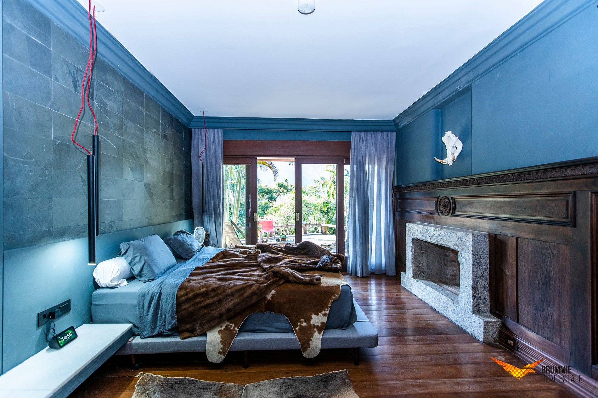 The spacious living room blends comfort and elegance, featuring a smart TV, plush seating, a dining area, and views of the lush garden. The house includes four air-conditioned bedrooms — three of them en-suites — with a stunning 90 m² master suite offering a king-size bed, private balcony, sofa, and a serene space for yoga or meditation. The remaining rooms feature queen-size beds.