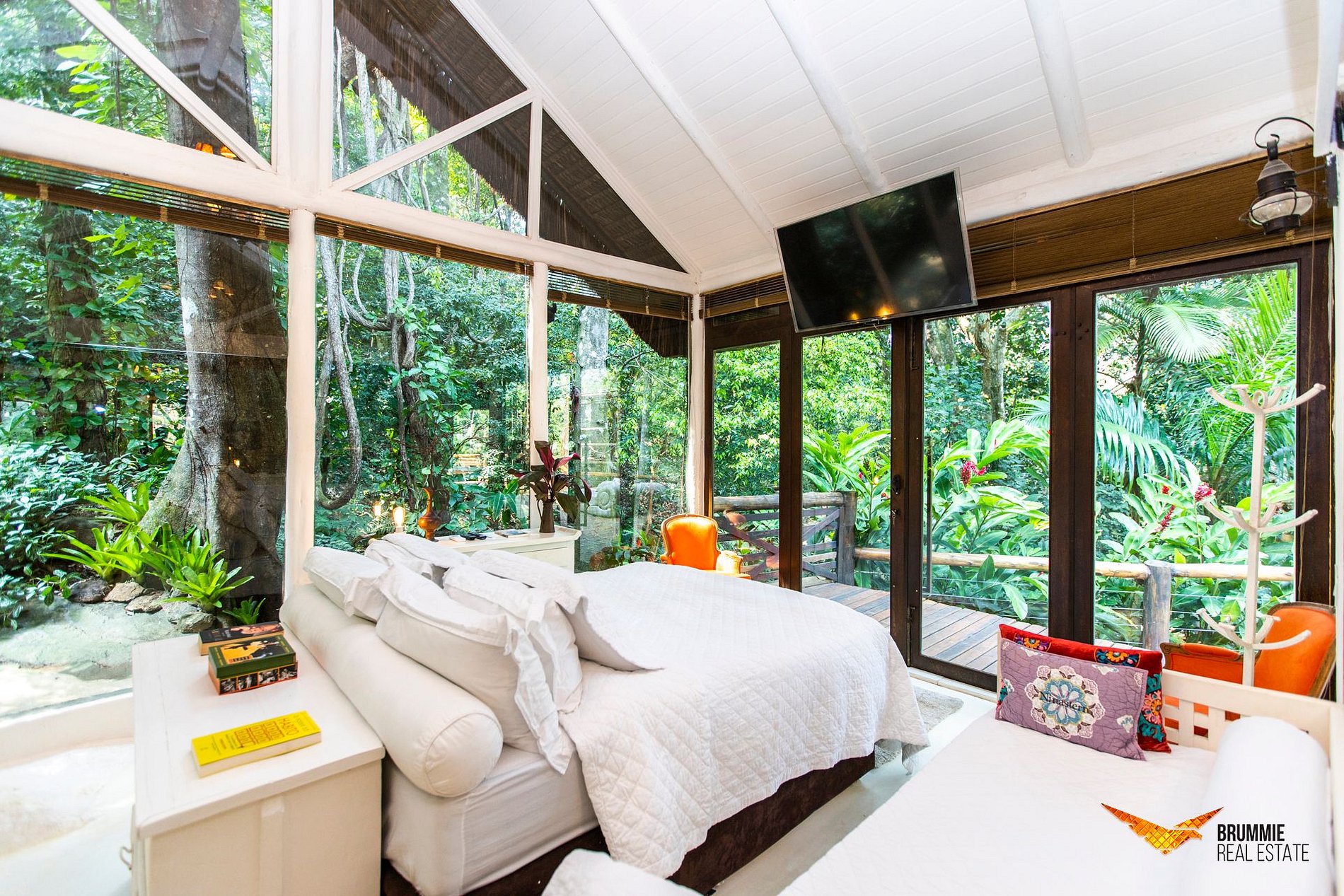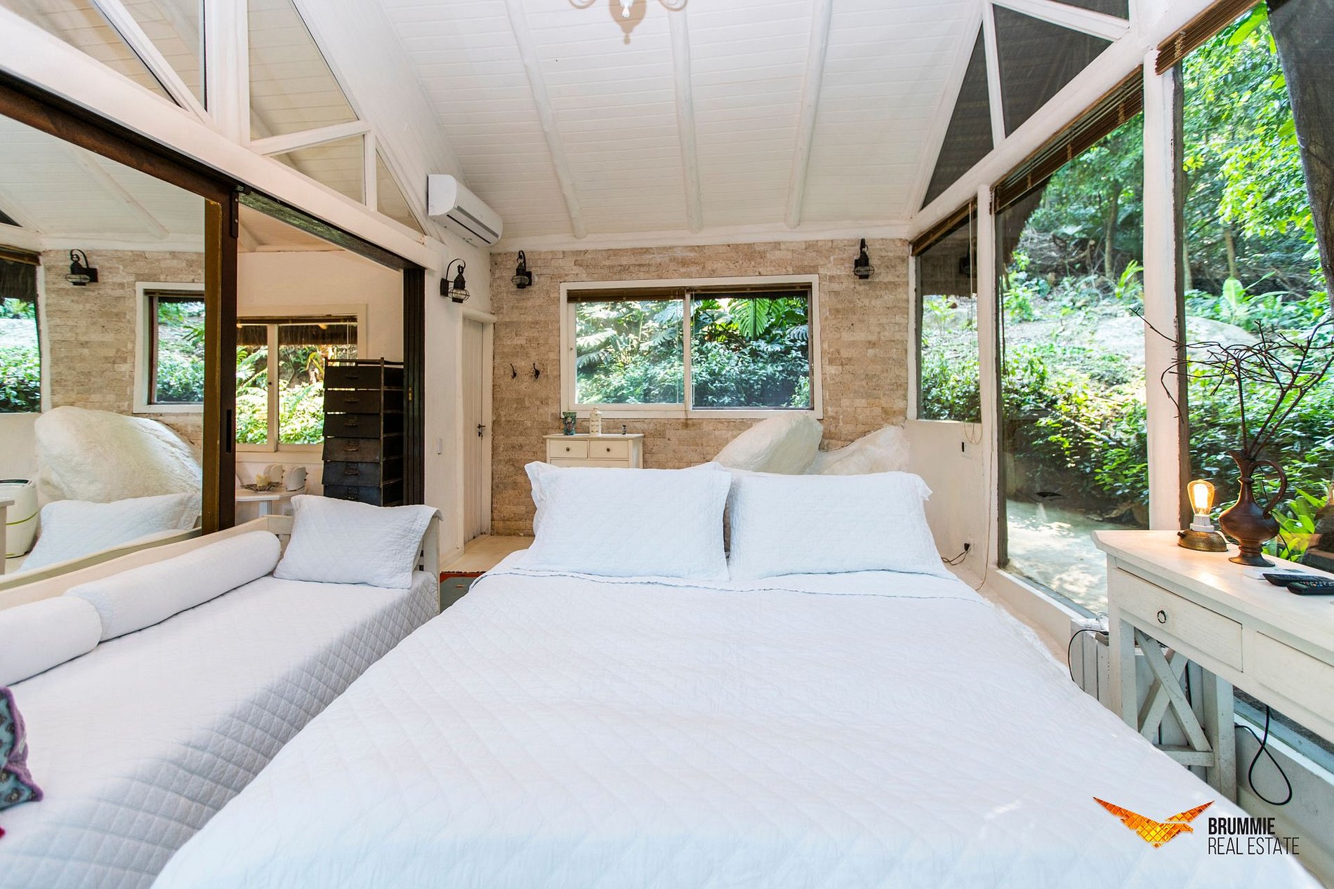 Charming nature-surrounded home just minutes from Leblon Beach, nestled in an exclusive forest condominium with nearby trails and waterfalls. Offering spacious interiors, two cozy queen-bed suites, and a serene terrace perfect for relaxation.