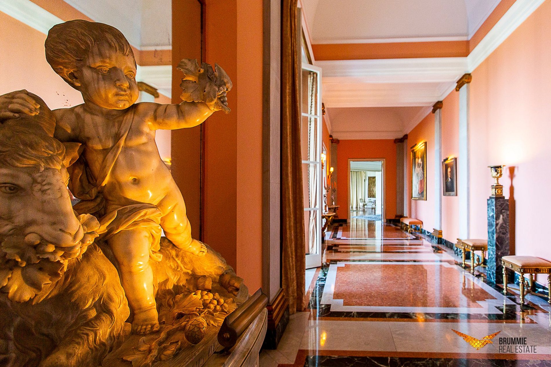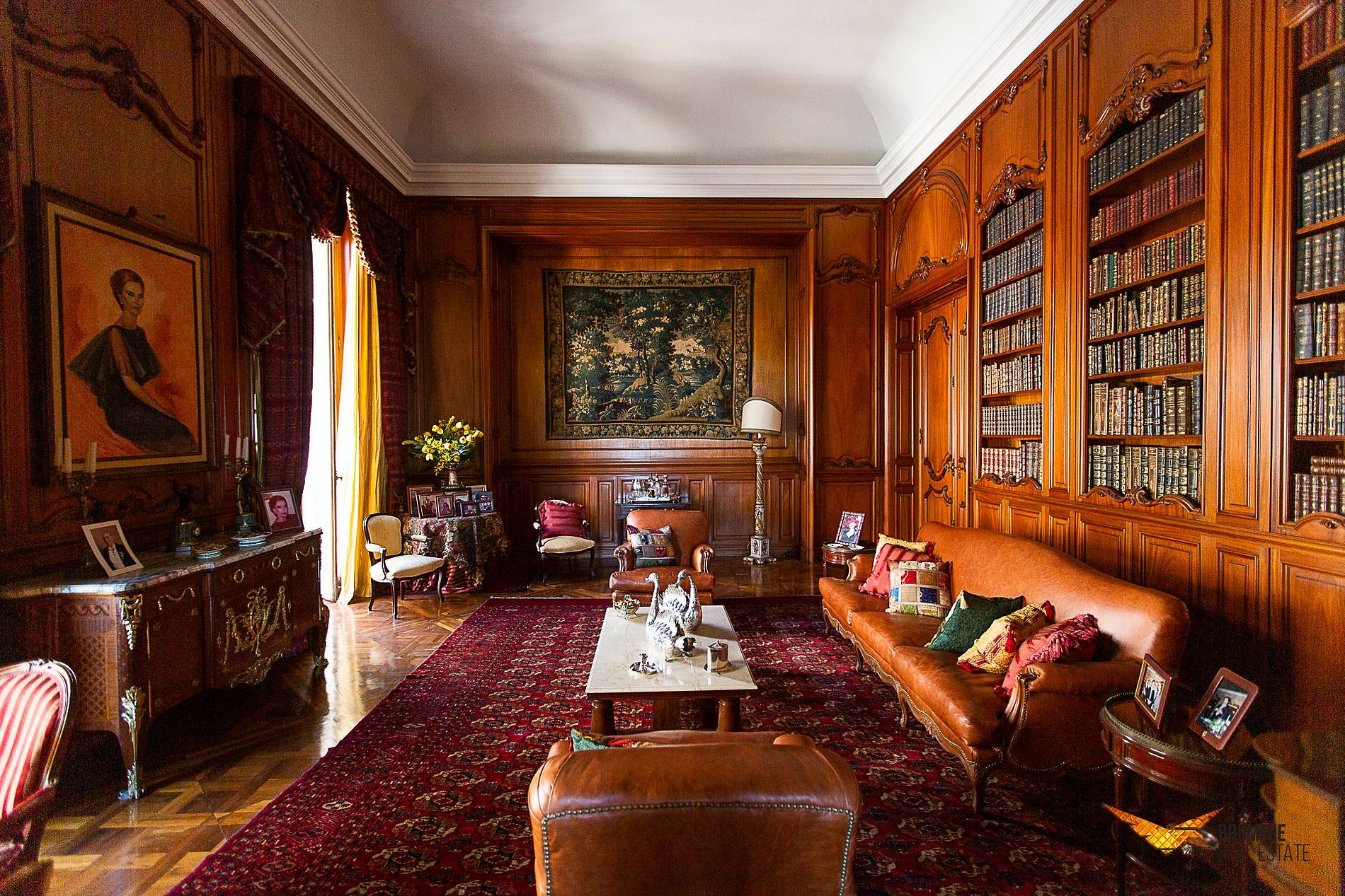 El interior ofrece cinco suites elegantes, salones conectados por una majestuosa escalera de mármol, suelos italianos y españoles, mobiliario francés e italiano y una colección de arte refinada. Cada rincón refleja sofisticación y tradición.
