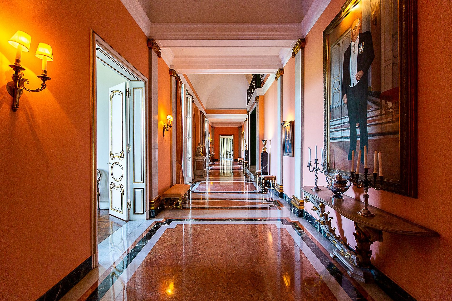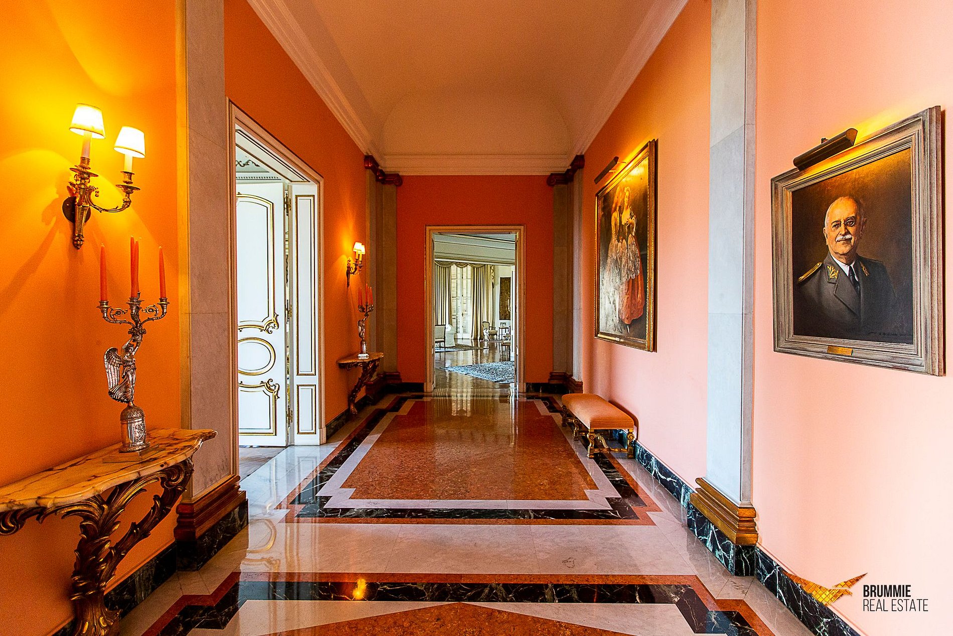 El interior ofrece cinco suites elegantes, salones conectados por una majestuosa escalera de mármol, suelos italianos y españoles, mobiliario francés e italiano y una colección de arte refinada. Cada rincón refleja sofisticación y tradición.