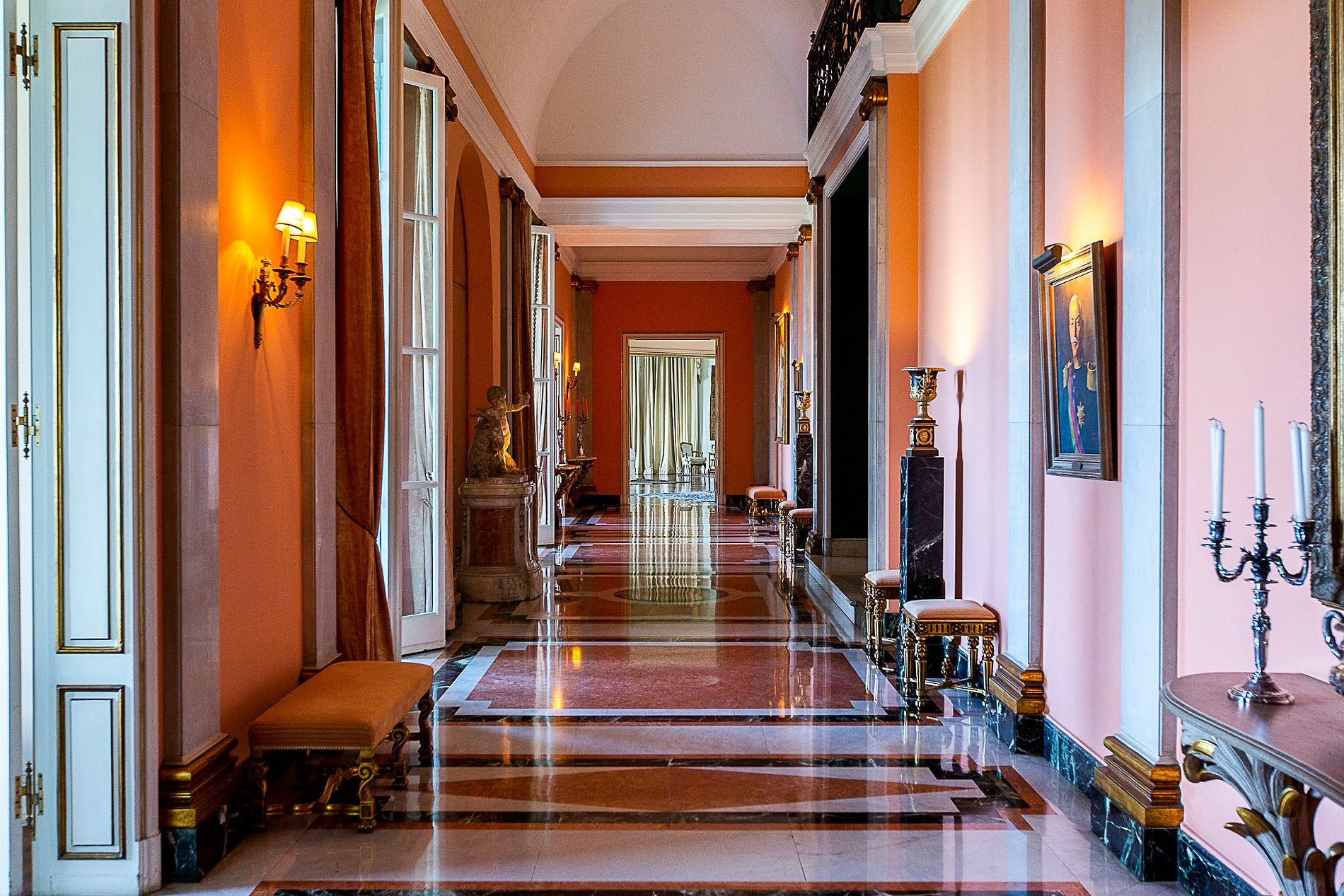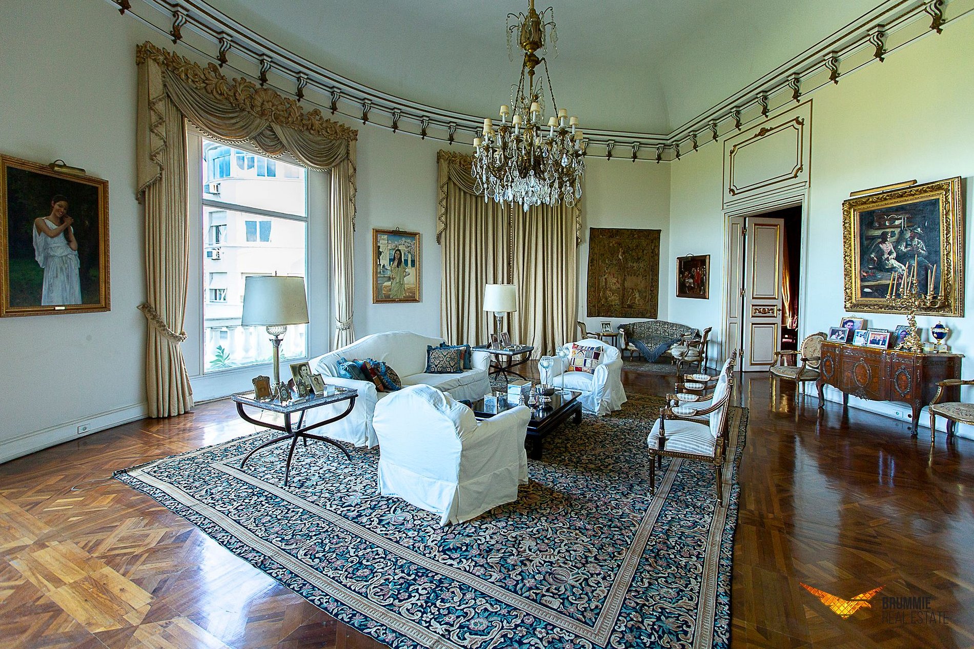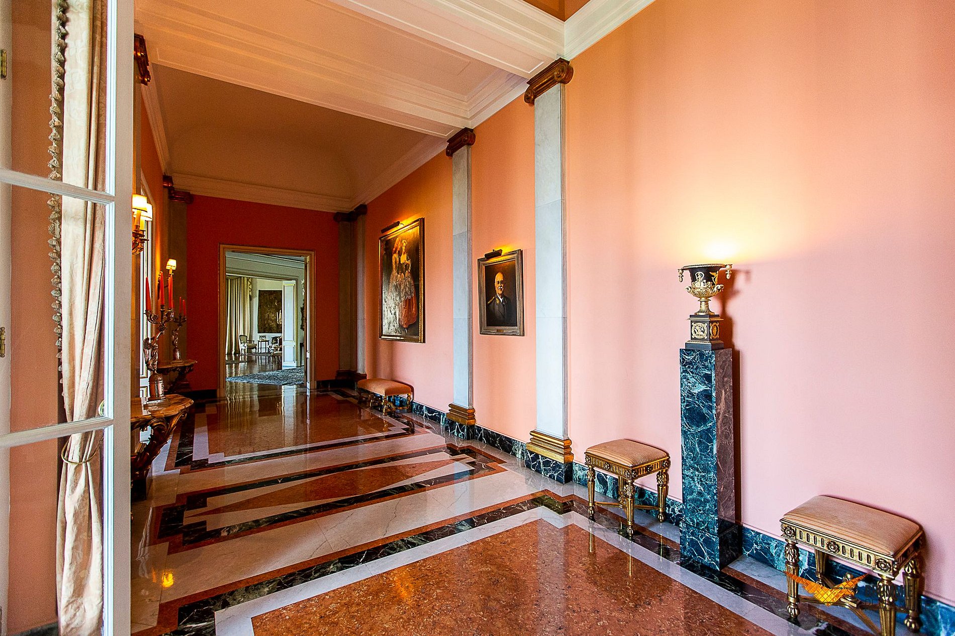 El interior ofrece cinco suites elegantes, salones conectados por una majestuosa escalera de mármol, suelos italianos y españoles, mobiliario francés e italiano y una colección de arte refinada. Cada rincón refleja sofisticación y tradición.