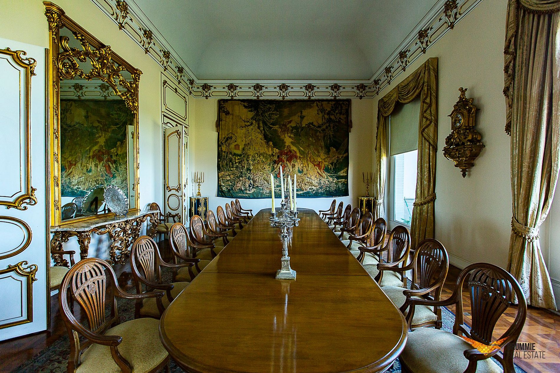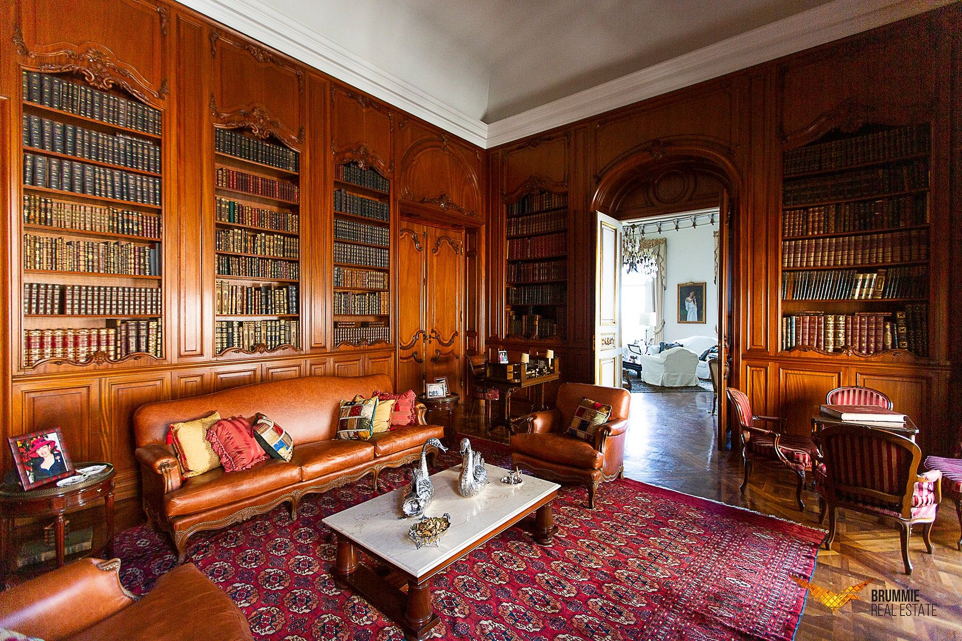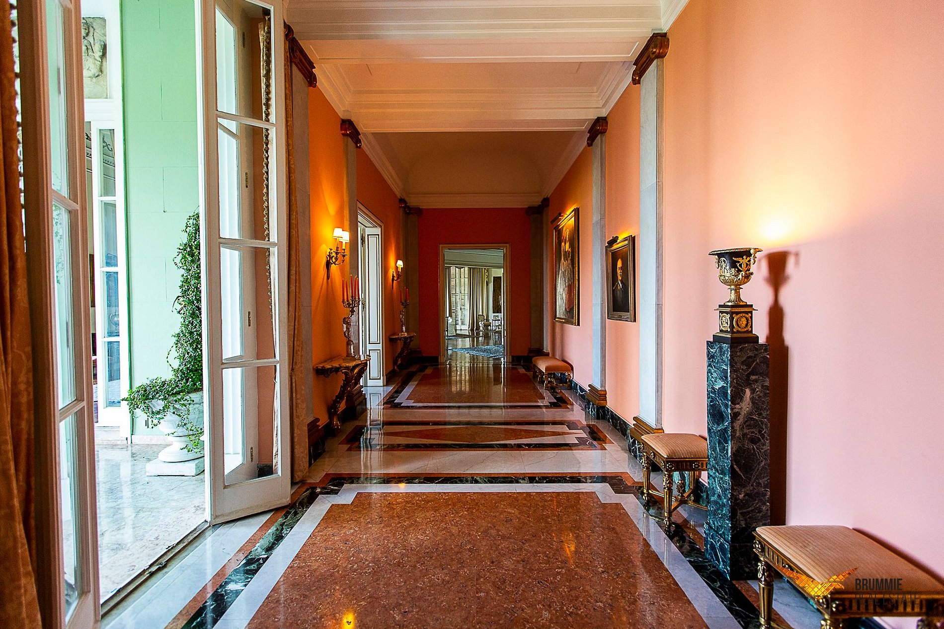 El interior ofrece cinco suites elegantes, salones conectados por una majestuosa escalera de mármol, suelos italianos y españoles, mobiliario francés e italiano y una colección de arte refinada. Cada rincón refleja sofisticación y tradición.