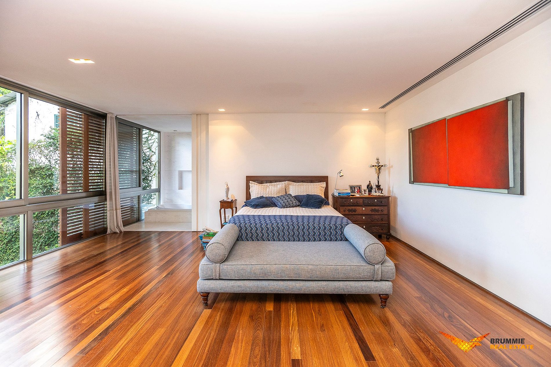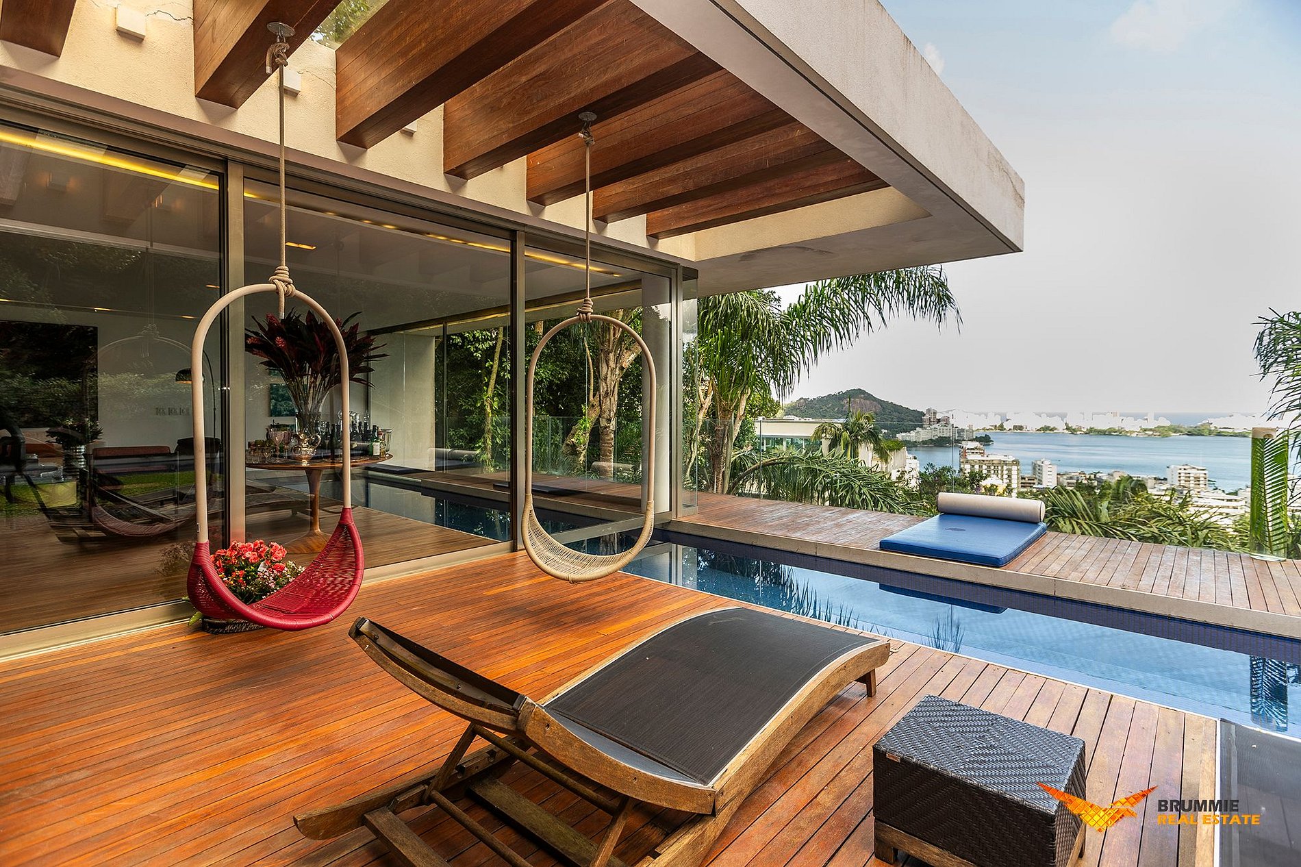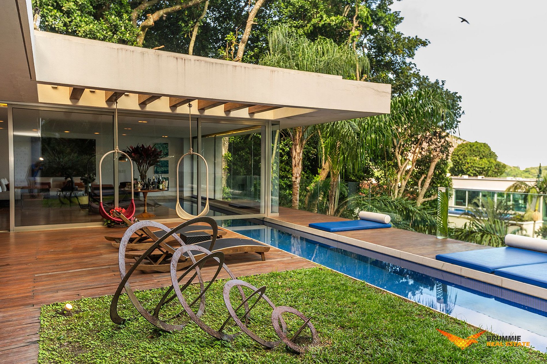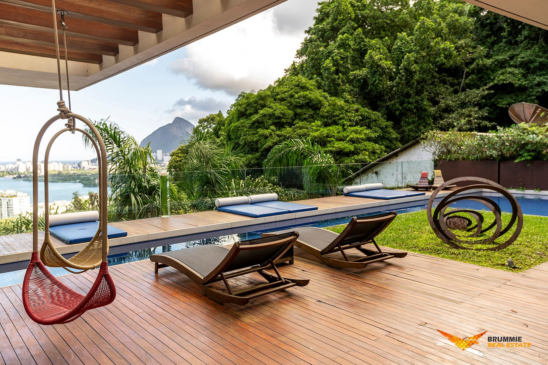 Con un estilo ecléctico y una arquitectura diseñada para el bienestar, la casa ofrece interiores amplios y llenos de luz natural. Su piscina en forma de L es uno de los principales atractivos: parte del interior de la casa y se extiende hacia el jardín, creando una atmósfera escenográfica y relajante. Junto a ella, una terraza panorámica con vistas impresionantes a la Laguna Rodrigo de Freitas invita a momentos de contemplación y experiencias al aire libre inolvidables.