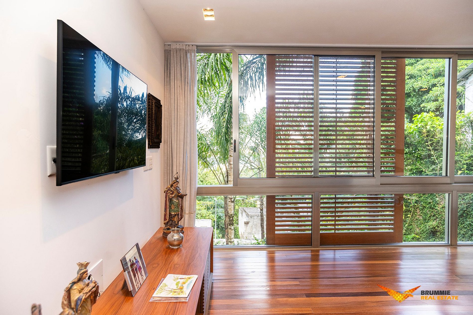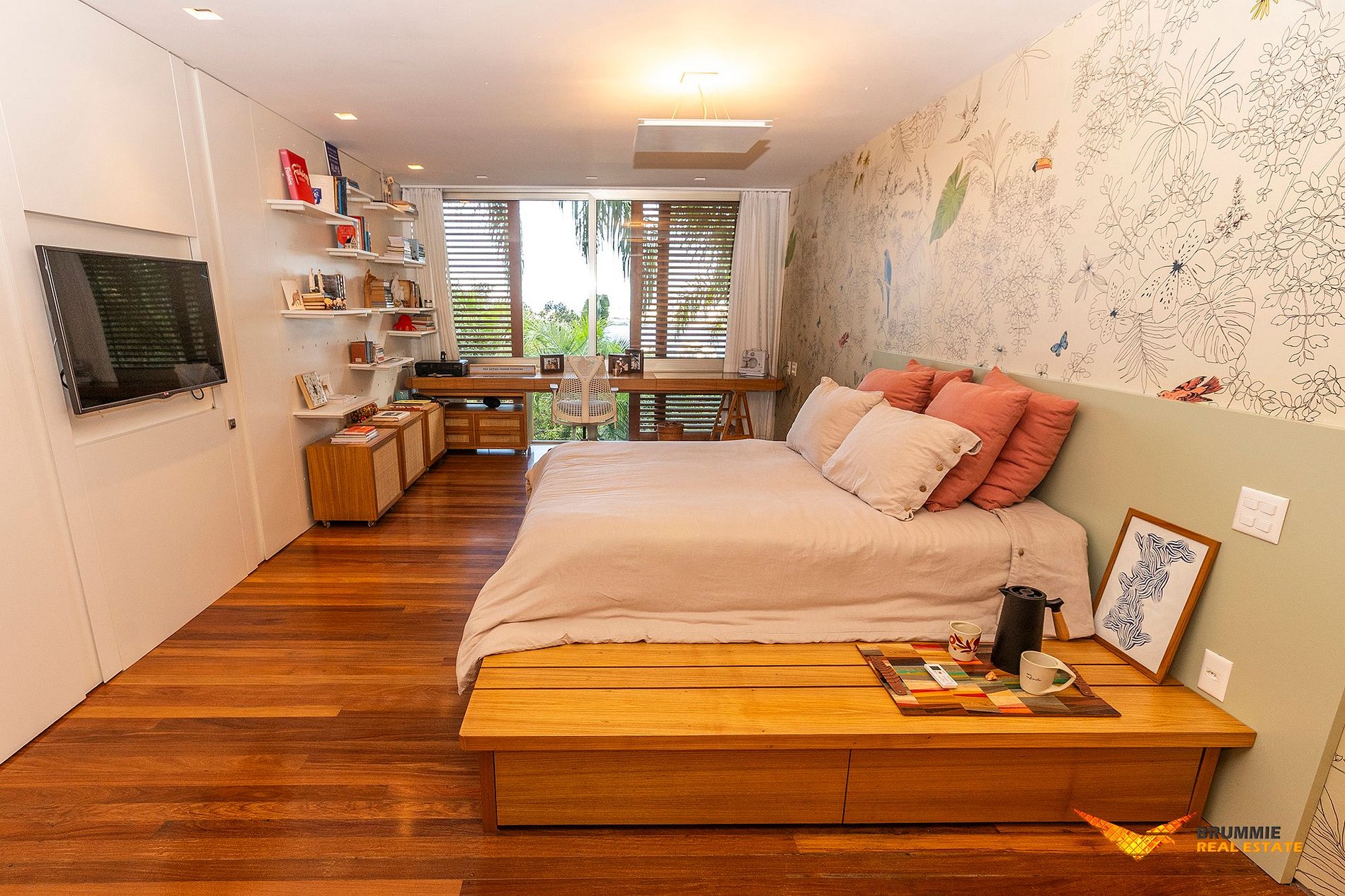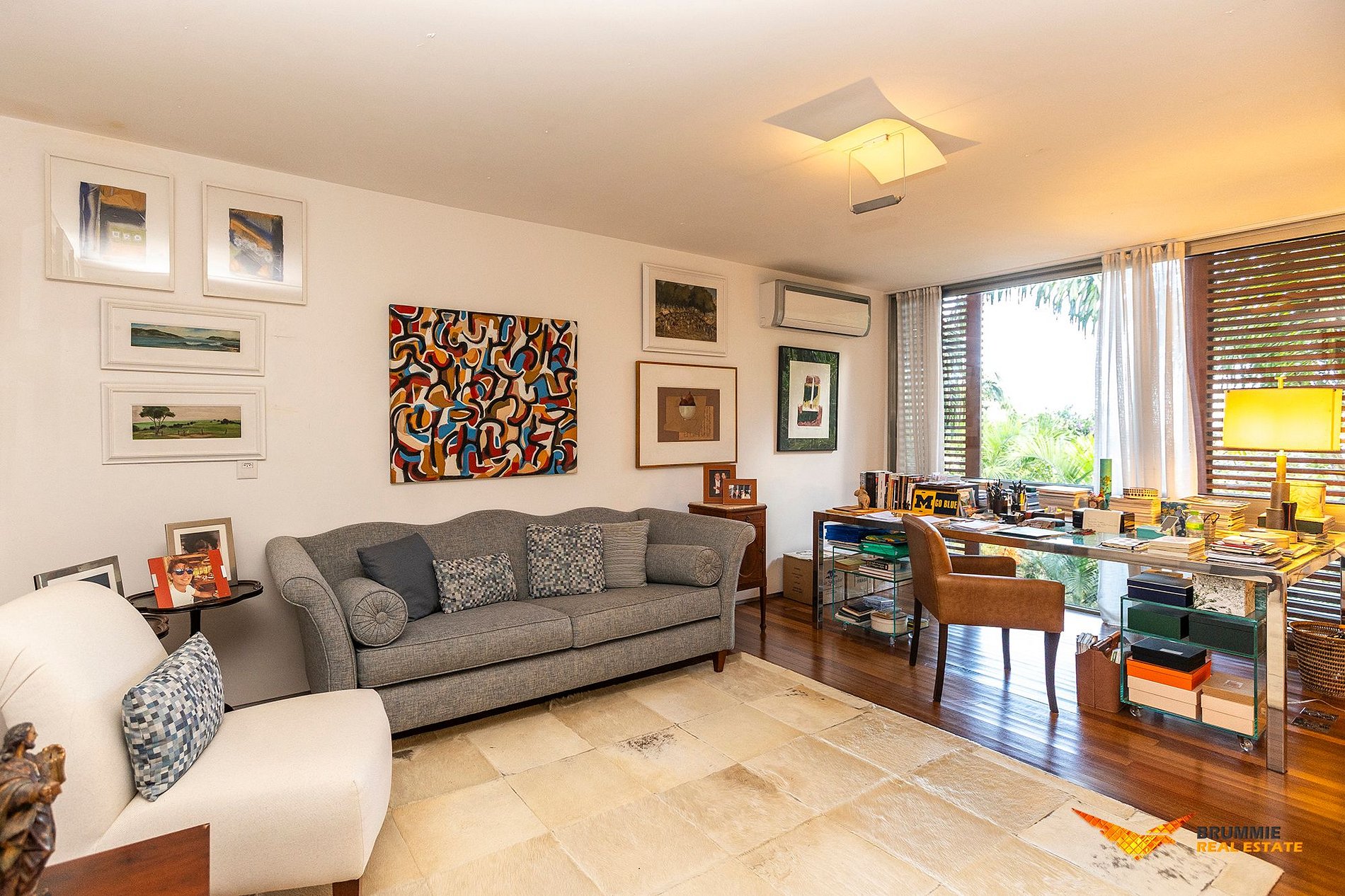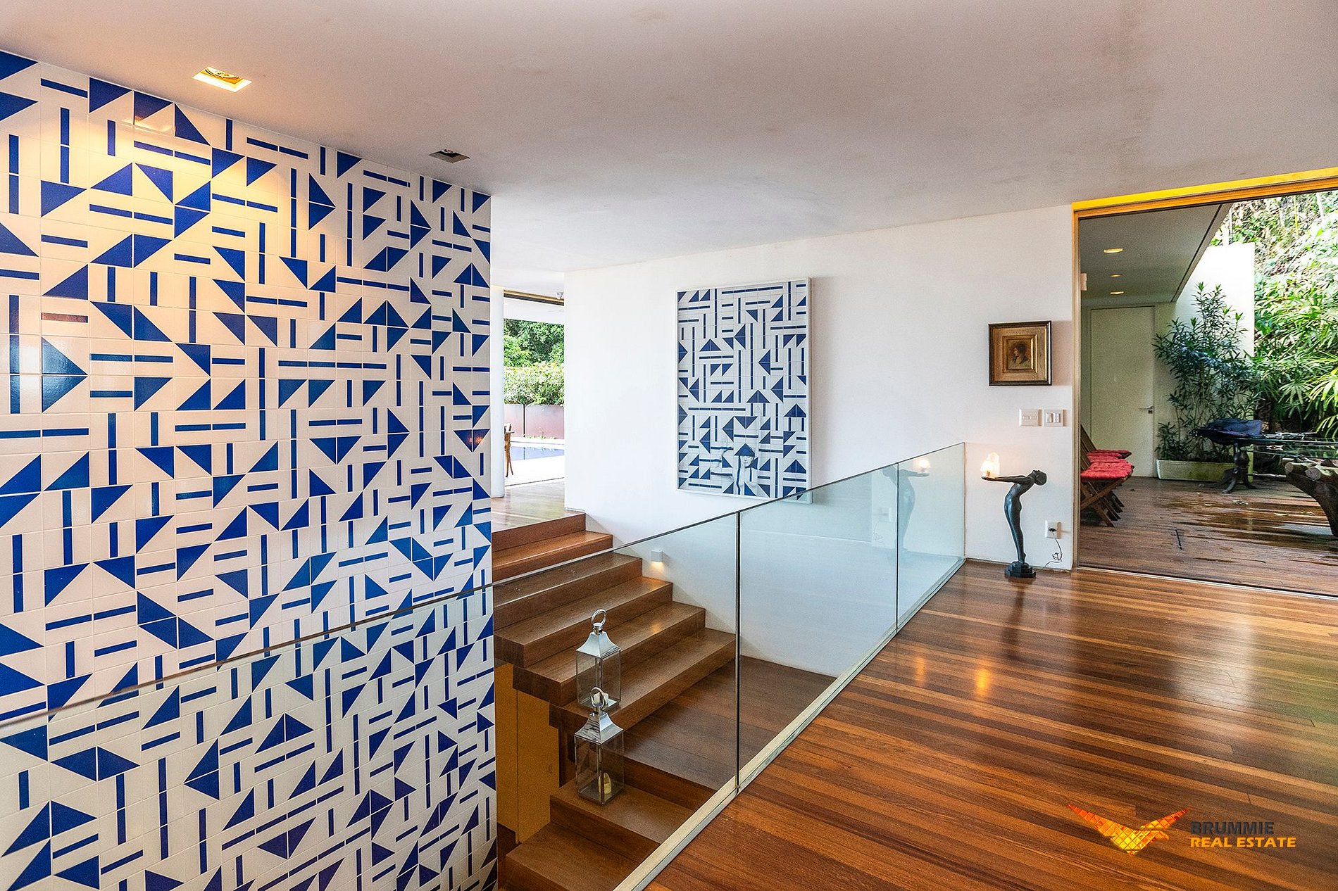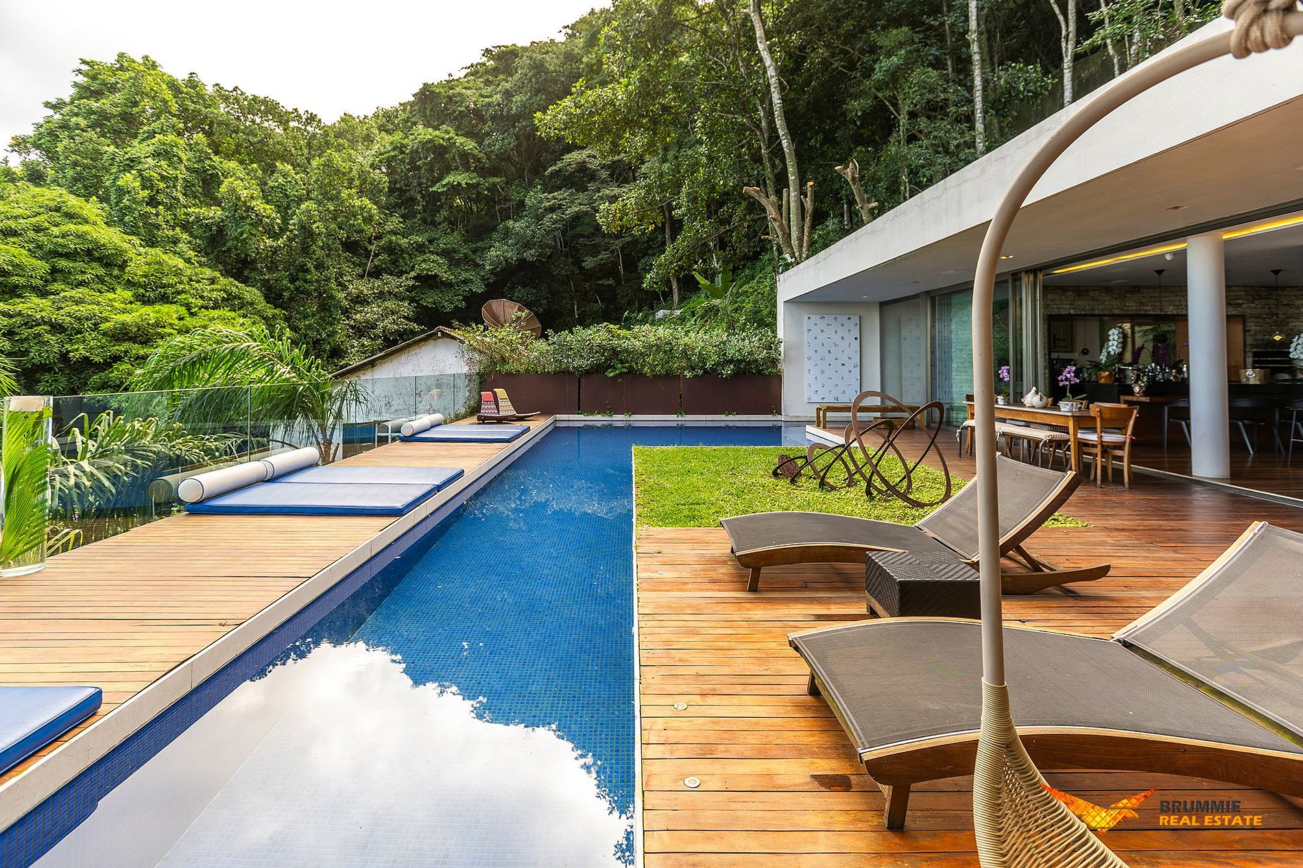Con un estilo ecléctico y una arquitectura diseñada para el bienestar, la casa ofrece interiores amplios y llenos de luz natural. Su piscina en forma de L es uno de los principales atractivos: parte del interior de la casa y se extiende hacia el jardín, creando una atmósfera escenográfica y relajante. Junto a ella, una terraza panorámica con vistas impresionantes a la Laguna Rodrigo de Freitas invita a momentos de contemplación y experiencias al aire libre inolvidables.