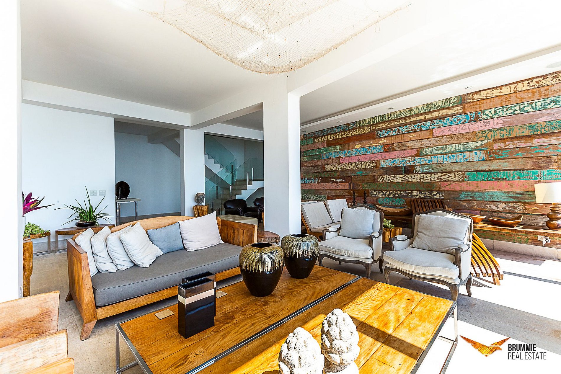 São seis suítes com vista para o mar, decoradas com sofisticação — camas king e queen, edredons de plumas, iluminação assinada e detalhes em madeira de demolição. Janelas panorâmicas iluminam os ambientes e revelam jardins tropicais, uma piscina de borda infinita e amplos decks perfeitos para relaxar ou receber.