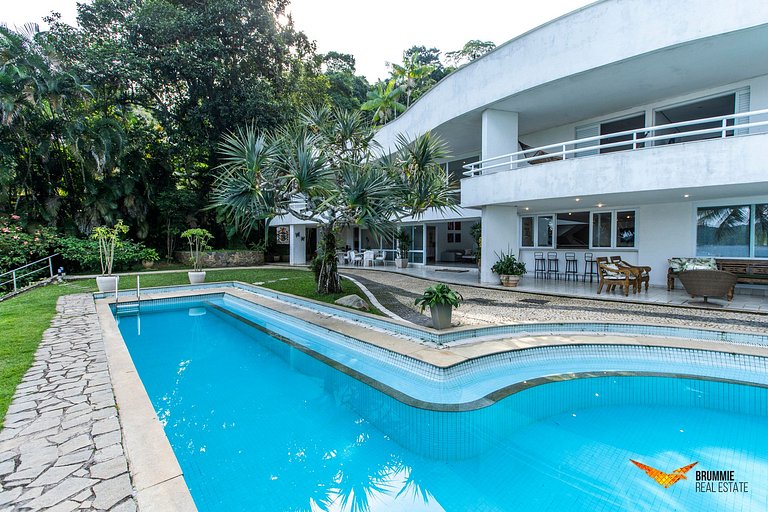 Com estrutura excepcional, a propriedade conta com garagem coberta para 3 veículos e espaço descoberto para até 20 carros, além de piscina, churrasqueira, sauna seca, praia privativa, garagem náutica e píer para embarcações de até 150 pés, além de heliponto de uso exclusivo dos hóspedes.