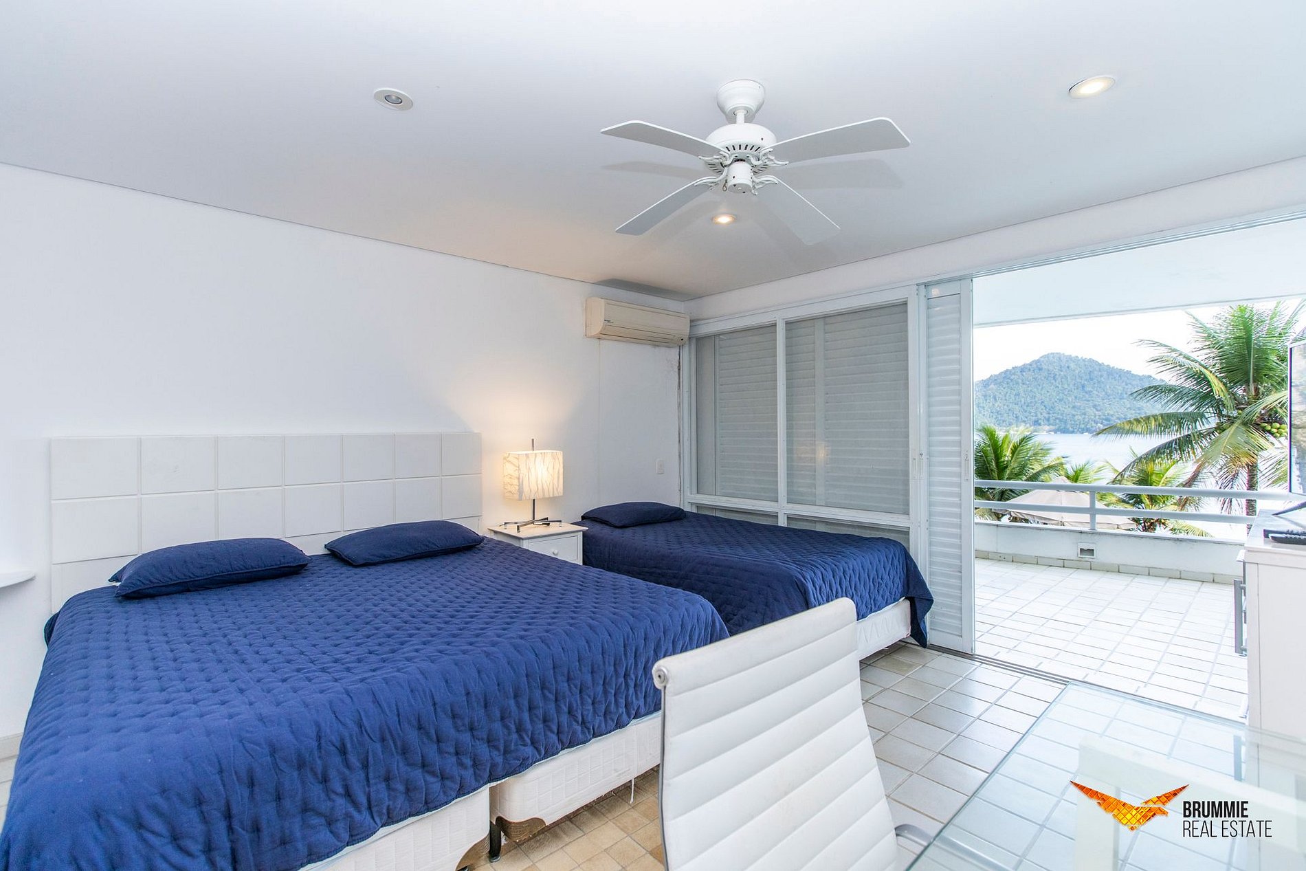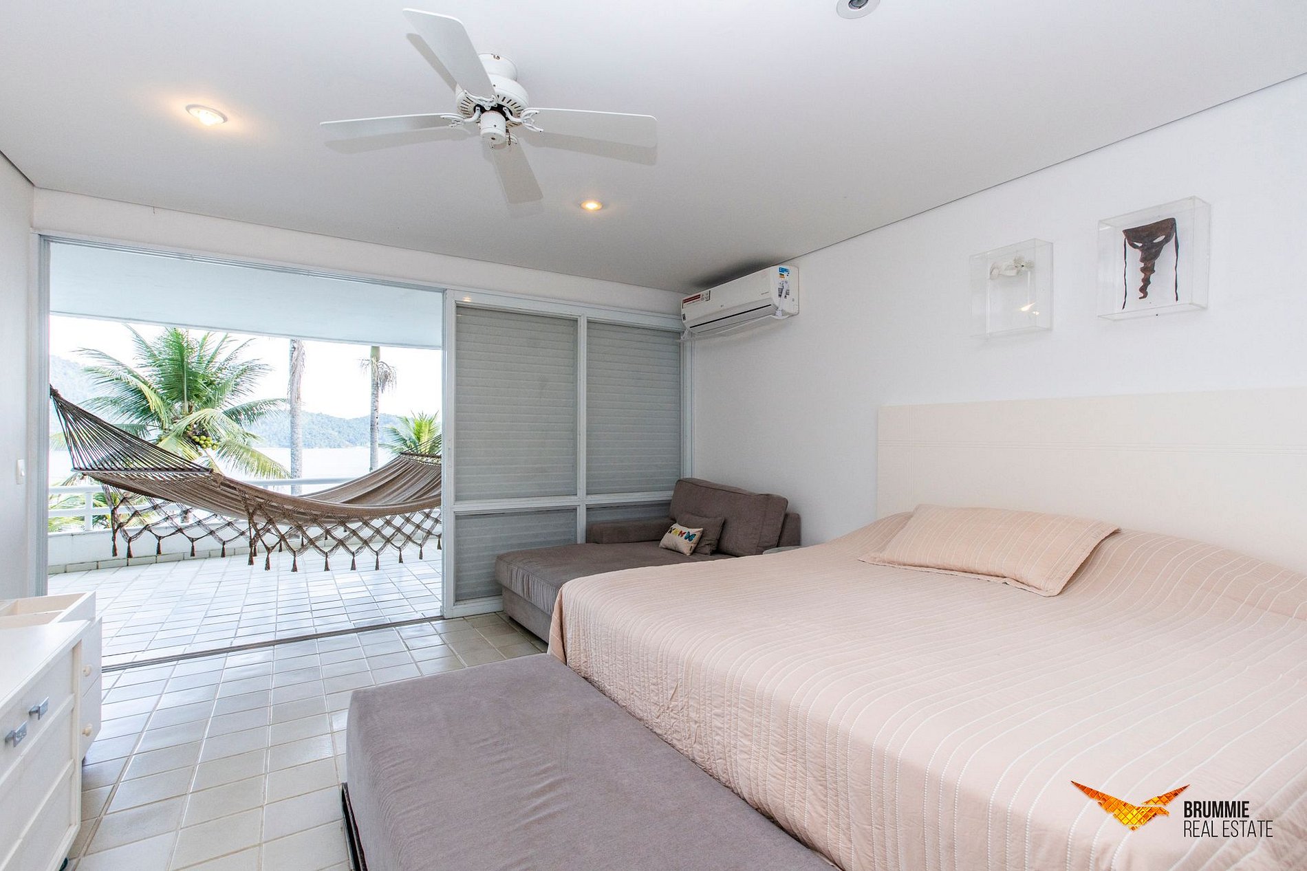 São 8 quartos cuidadosamente equipados, sendo 6 suítes — 5 delas com varanda e vista para o mar — e 2 quartos com banheiro compartilhado. A suíte master oferece uma relaxante banheira de imersão. Todos os ambientes são climatizados e contam com telas de proteção contra insetos.