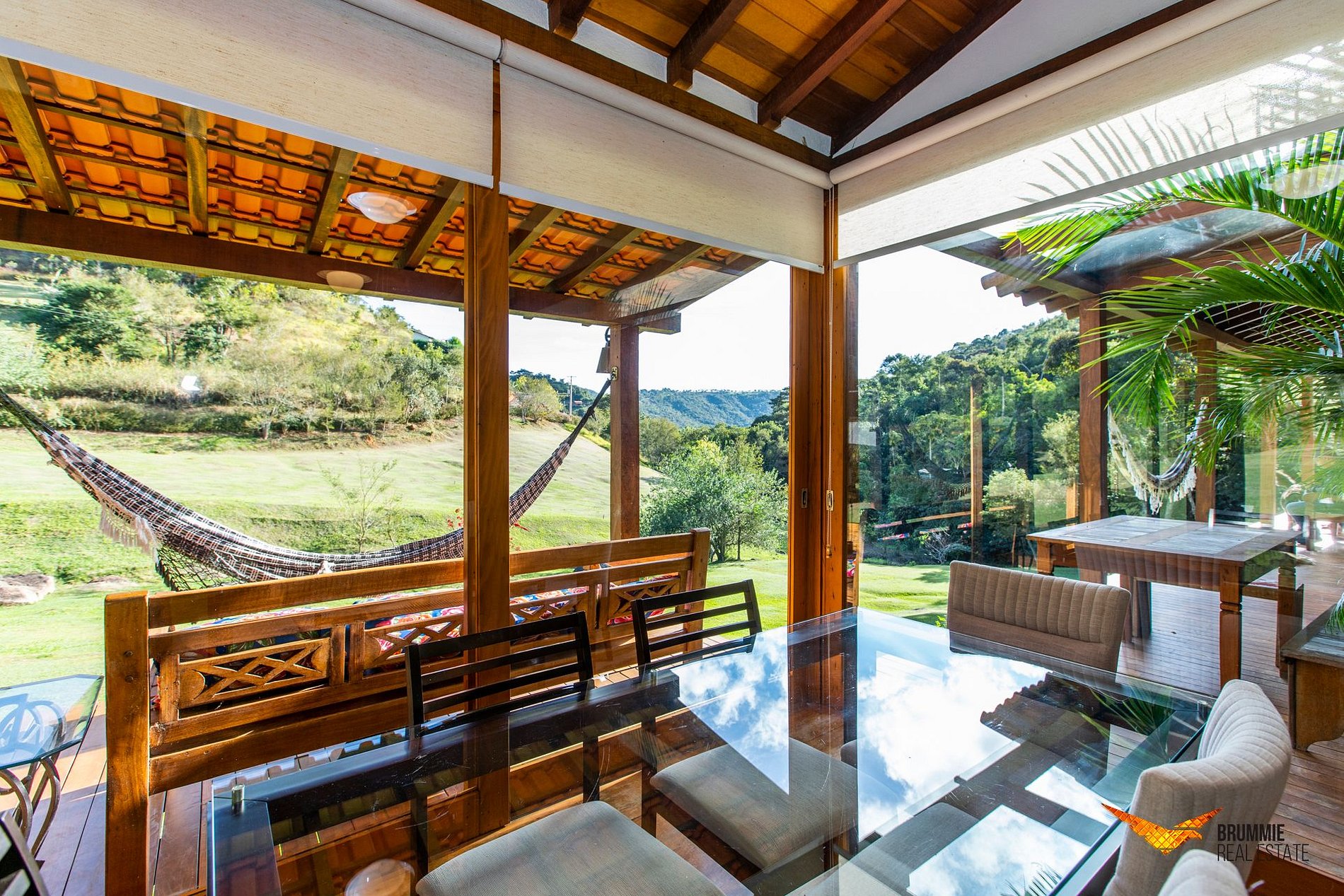 Com duas construções principais (Chalé Principal e Chalé Canadense) e ampla área de lazer com piscina, quadra gramada de vôlei/beach tênis, Parrilheira, Galinheiro, Horta orgânica e Deck com aquecedor, a propriedade acomoda confortavelmente 4 casais.