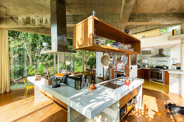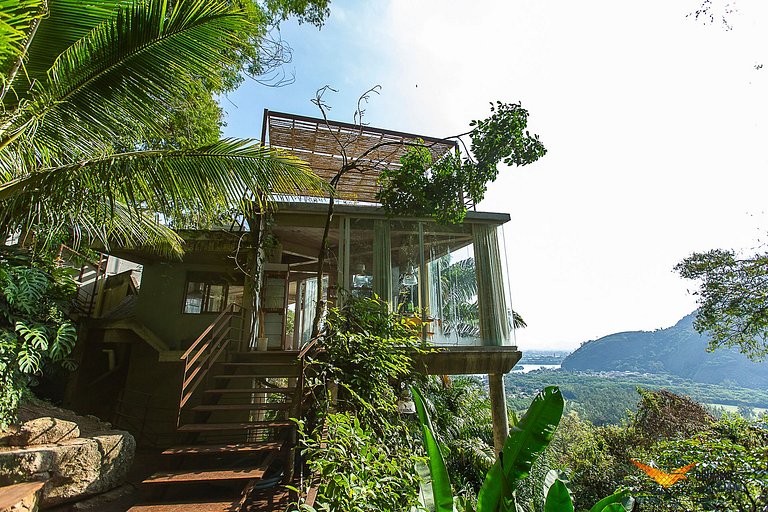 Com vista deslumbrante para o mar e a lagoa, conta com piscina natural com cascata, jacuzzi, campo de futebol e ambientes amplos que equilibram privacidade e convivência. Destaque no programa Casa Brasileira da GNT, é um refúgio único em plena cidade, envolto pela exuberância da Mata Atlântica.