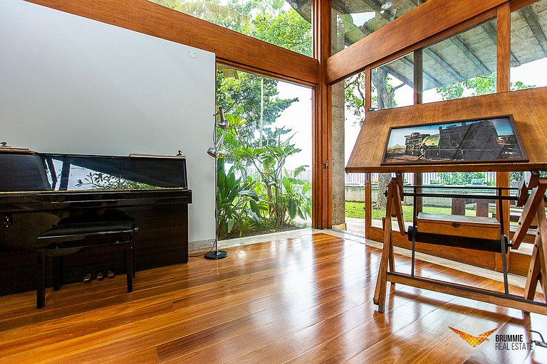 Com estilo loft e localização isolada à beira de uma floresta protegida, esta joia arquitetônica oferece vistas deslumbrantes do Pão de Açúcar, Baía de Guanabara e da cidade. Ambientes como a sala com portas de vidro, o pátio abobadado e o mirante no terraço proporcionam uma conexão única com a paisagem.