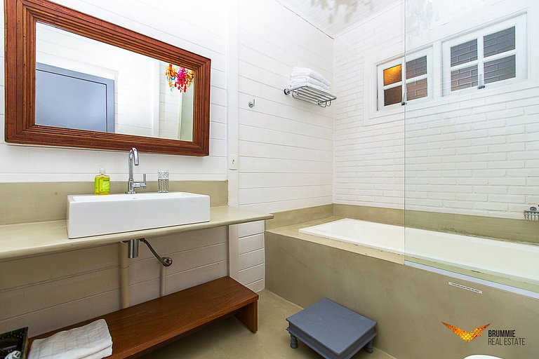 No segundo piso, as áreas internas encantam com salas amplas, piano, livros, jogos, varanda com toldos automáticos e uma cozinha equipada com louças refinadas. As suítes são aconchegantes, com ar-condicionado, roupas de cama de qualidade e detalhes pensados para o seu bem-estar. Estacionamento seguro em frente à casa completa a experiência.