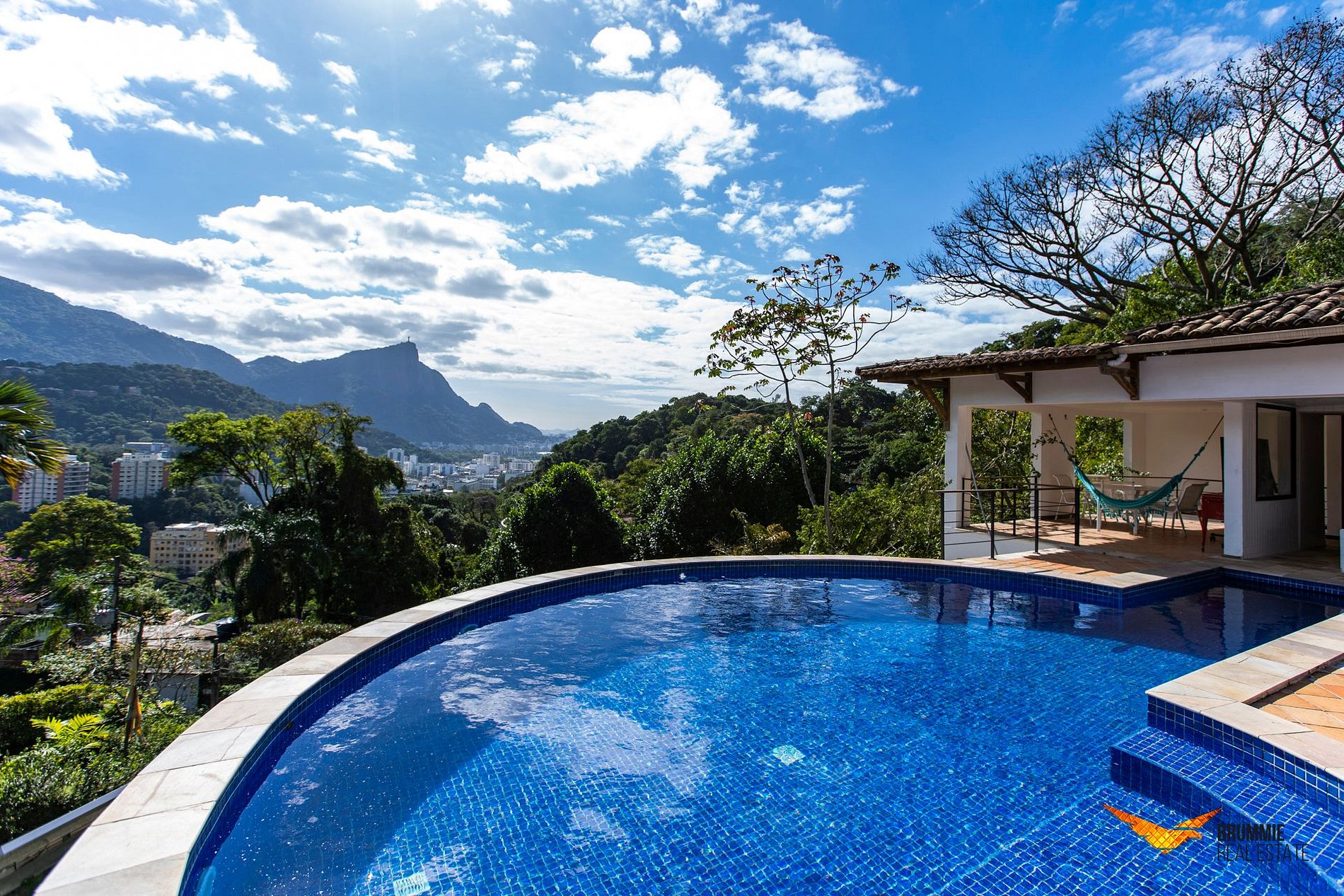 Localizada em uma exuberante encosta tropical, esta casa oferece vistas panorâmicas da cidade e da icônica estátua do Cristo Redentor. O espaço ao ar livre conta com um amplo jardim, piscina, churrasqueira e três charmosas áreas de estar cobertas — perfeitas para momentos de lazer ou celebrações especiais. A propriedade está disponível para eventos familiares e corporativos, casamentos e produções audiovisuais.