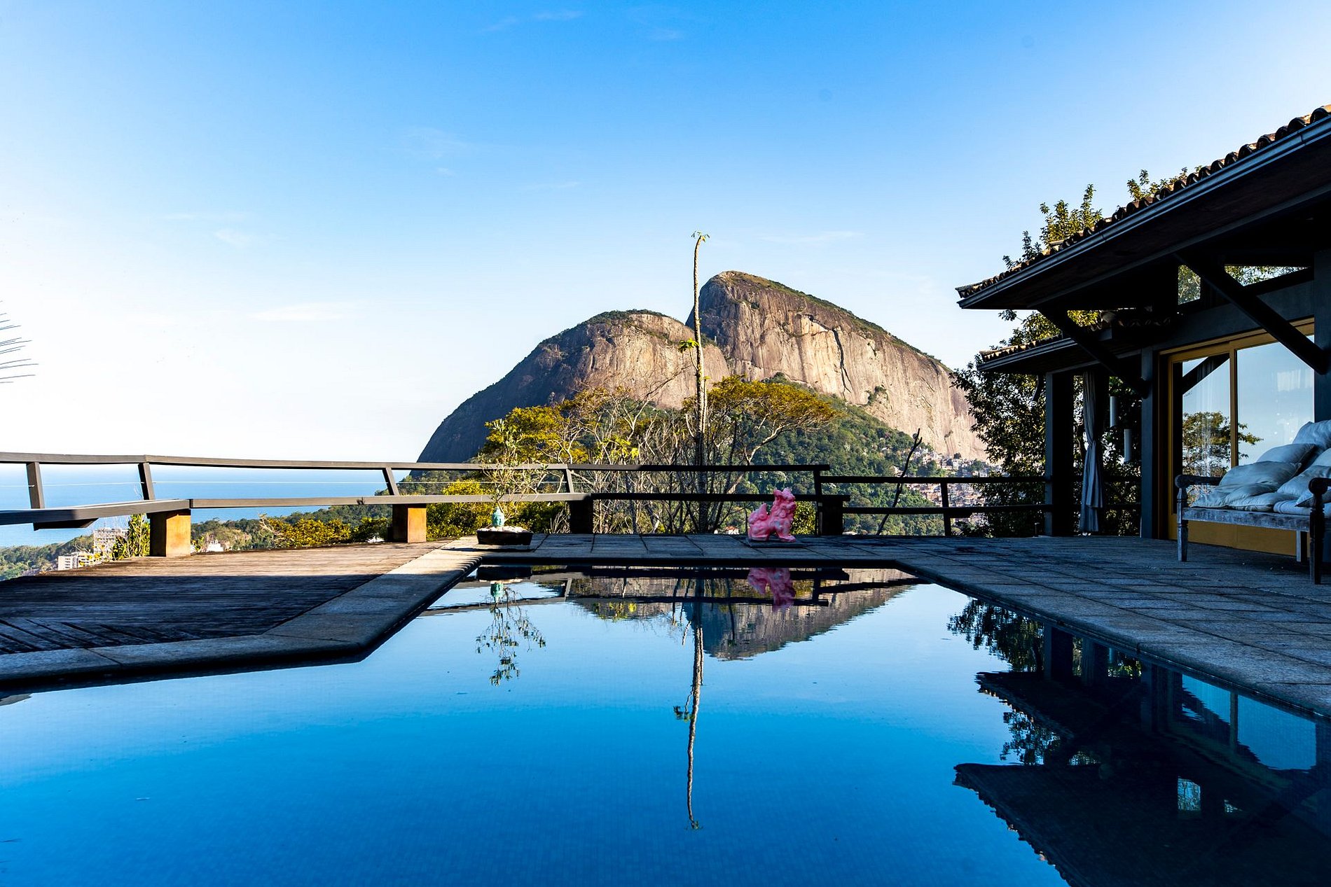 Com recepção 24 horas, oito vagas de garagem, piscina, churrasqueira, forno de pizza a lenha e um jardim encantador, esta casa oferece o cenário perfeito para uma estadia inesquecível no coração verde do Rio.
