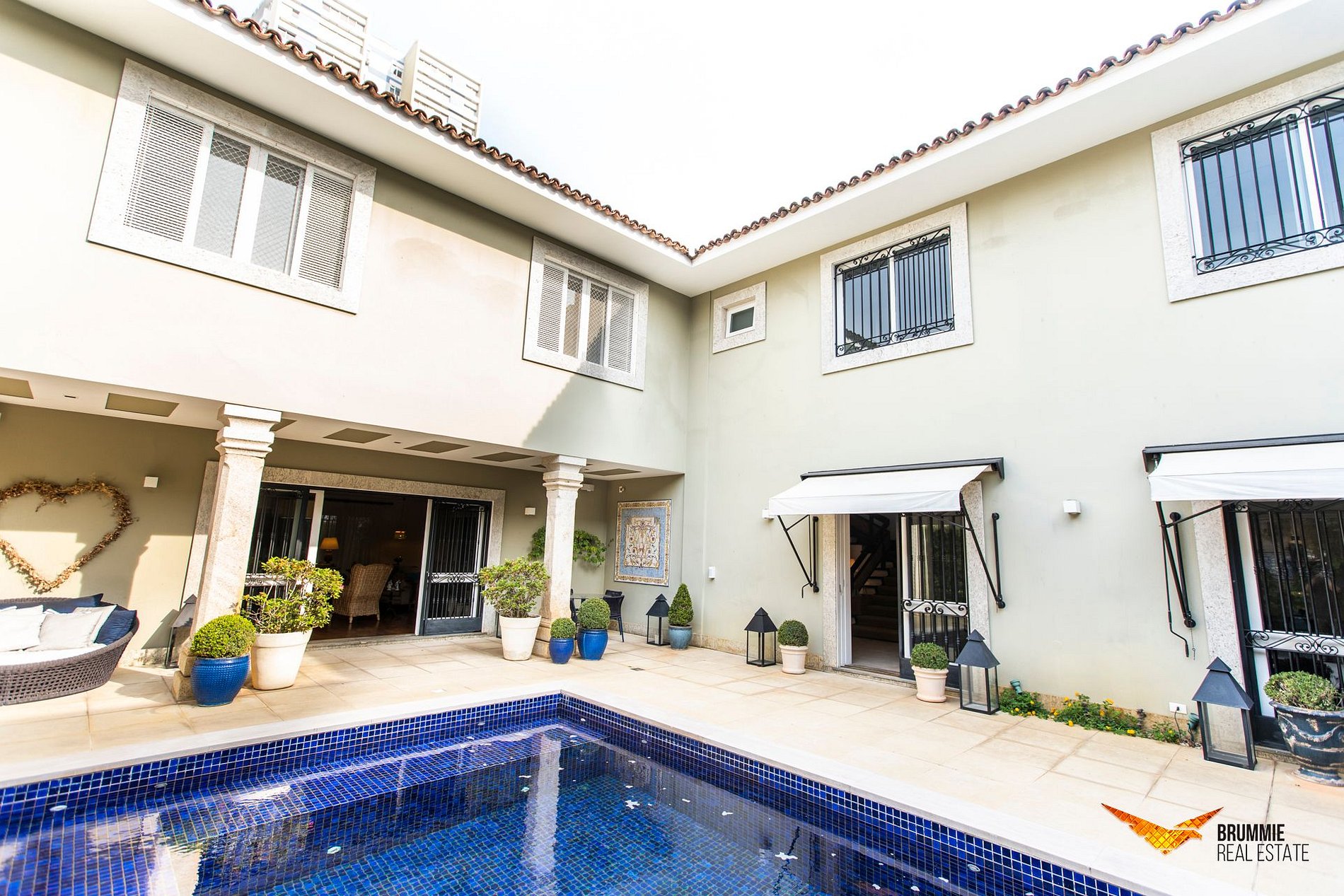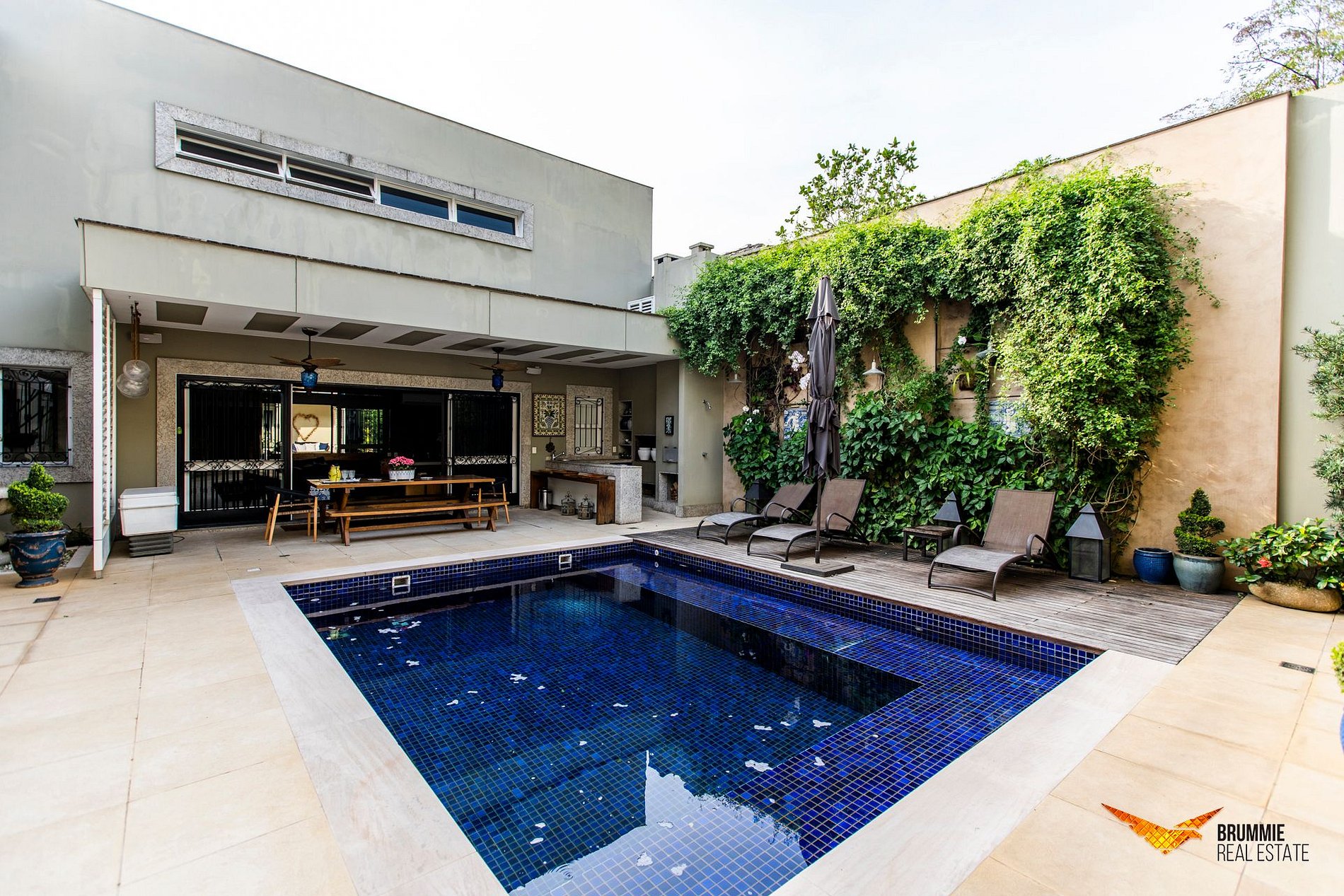 Com piscina, churrasqueira, forno de pizza e uma adega climatizada, a casa dispõe de cinco quartos (quatro suítes), sete banheiros, três salas de estar, sala de jantar, escritório e cozinha equipada — tudo pensado para uma estadia inesquecível.