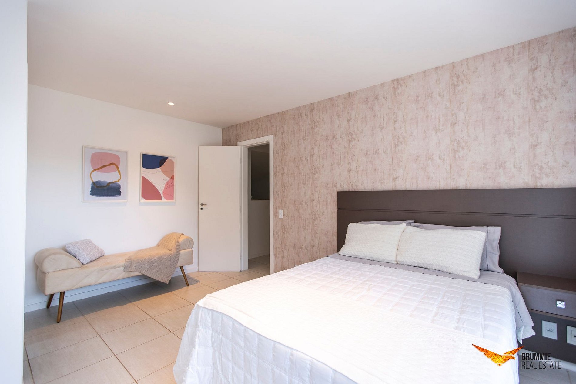A casa conta com piscina particular, deck com espreguiçadeiras, cama de jardim, churrasqueira, cozinha, sala de estar, sala de jantar, lavanderia, dependência para funcionários ou apoio e 4 suítes.
