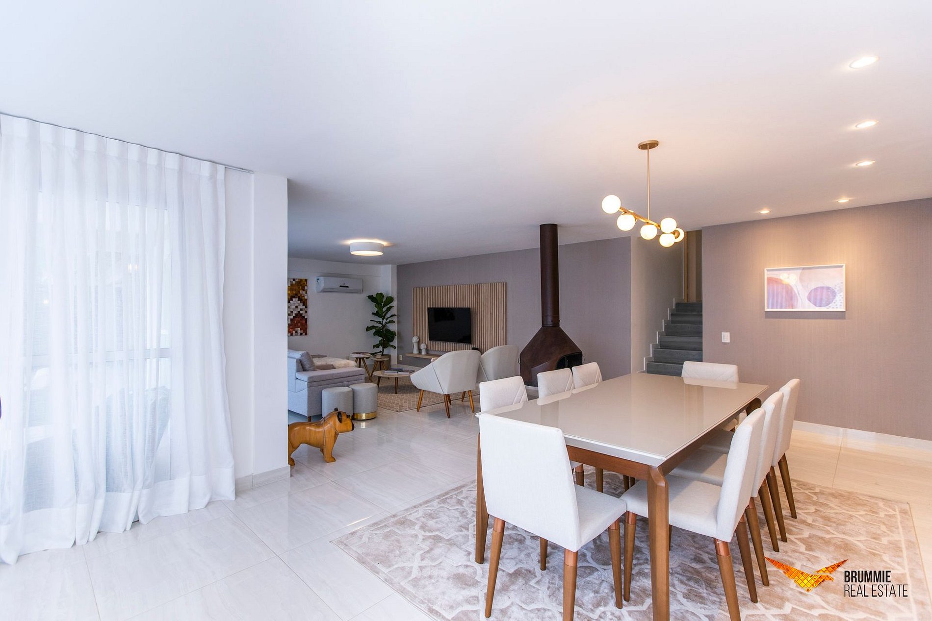 A casa conta com piscina particular, deck com espreguiçadeiras, cama de jardim, churrasqueira, cozinha, sala de estar, sala de jantar, lavanderia, dependência para funcionários ou apoio e 4 suítes.